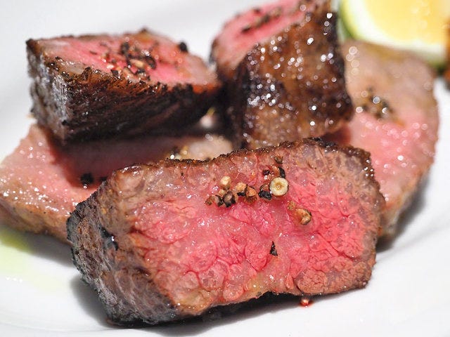 炭で焼いた肉のおいしさを知ってほしいという思いから、同店は肉料理にスポットを当てており、牛肉はすべて良質な黒毛和牛を使用している。また、有機を中心とした野菜は、シェフ自身が必ず目で見て選んでいる。