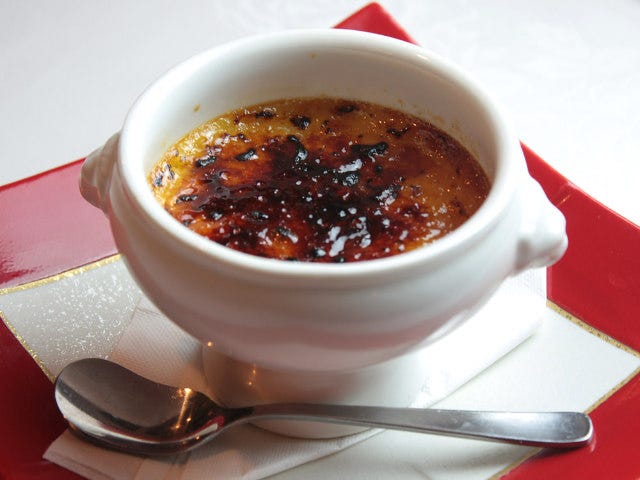 その表面をバーナーであぶった三温糖でカラメリゼ。ひんやりとした口当たりとカラメルのほろ苦さ、そしてプリンの濃厚な甘さが、食後の口を喜ばせてくれる。