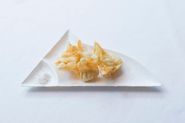 とろとろのフカヒレをワンタンの皮に包みカリッと揚げた、何とも贅沢なおつまみ。