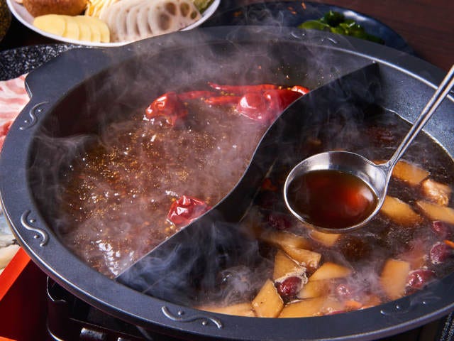 鍋のスープは、四川省麻鼓醤に唐辛子や豆鼓、紹興酒や山椒などを入れた自家製の豆板醤がベース。もう一種の肉骨茶(バクテー)スープは『シンガポール四川飯店』名物の味に独自の漢方を効かせたものだ。