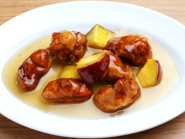 “京都中華”をヒントにしたという「酢豚」(写真上)は、シンプルに素揚げした豚肉とサツマイモのみで仕立てた“白い酢豚”だ。バーとだけあって、紹興酒等を使ったオリジナルカクテルも豊富にそろうのもうれしい。