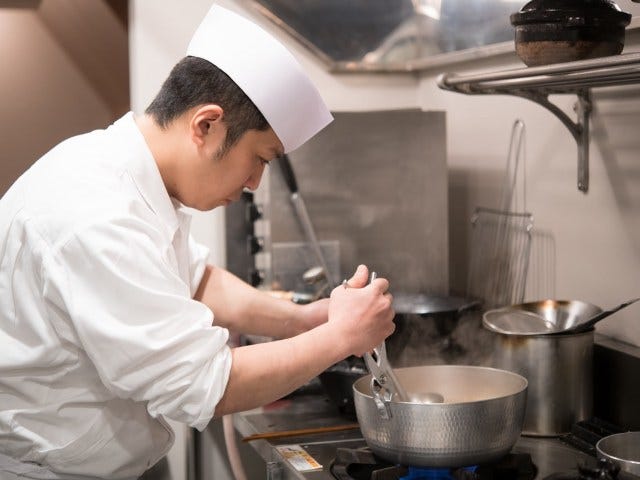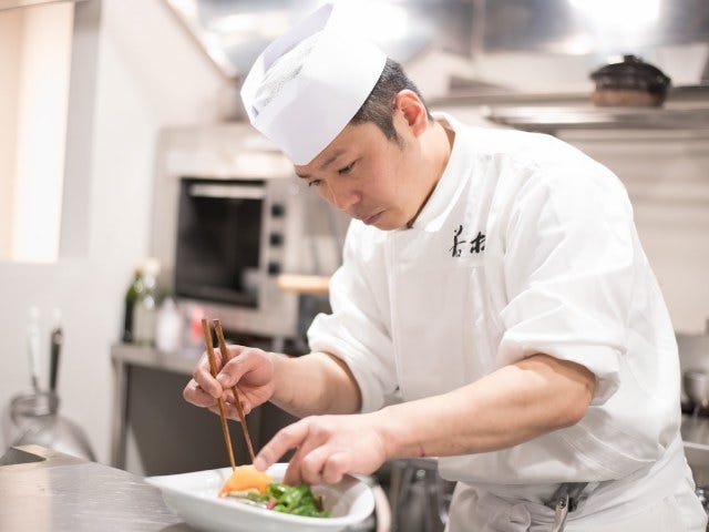 神奈川県内の料理店で修業を積んでいた若林さんが、憧れていた『青山えさき』の門を叩いた時、驚いたのは江﨑新太郎さんの対応だった。応募すると「ほかにどの店を受けているのか」を気にする料理店が多いなか、江﨑さんは全く違っていた。「できるだけ多くの店を受けてみるといい。そこから得られるものがきっとあるし、その結果、ここがよければまた来なさい。そしてほかの店で感じたことを教えてほしい」。その探求心に驚き、さらに深く心酔するようになった。