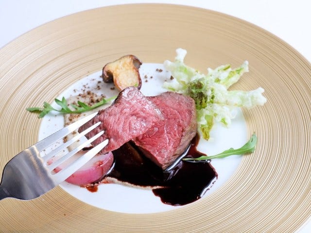 フランス料理のソースの中でも王道である赤ワインソースだが、高木シェフのそれは密度がギュと詰まっているのにシルクのようになめらか。五味のバランスが均等でいくらでもいただける。「“つなぎ”ですね。バターは限界まで減らすけれど代わりにフォンのゼラチン質で補っています」と高木シェフ。コクはあるのに軽い、これを味わえるだけで訪れる価値があると思わせてくれる。