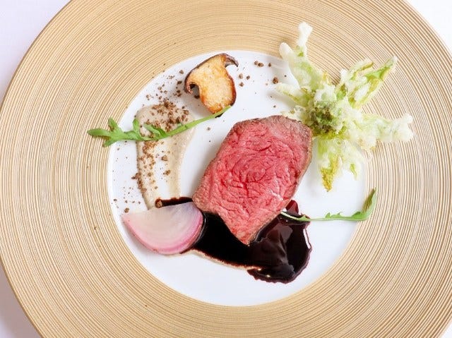 「熊本県産あか牛阿蘇王のロースト ソース・ヴァン・ルージュ」(写真上)。メイン料理はコースの中で頂点にあたるためボリュームも味もどっしりと重い。しかし高木シェフの皿はソースまですべて食べ切っても疲れないどころか、もうひと皿いただけるくらいなのである。