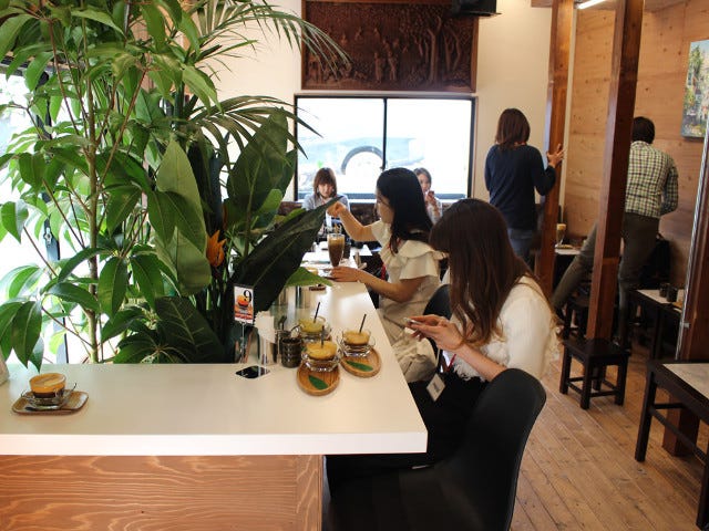 店内は2階建て。1階には1人客でも利用しやすいカウンター席があり、2階にはソファー席なども用意。テーブル席のイスは、本場ベトナムでよく使われている小さいタイプのものを使用している。ベトナムの雰囲気をより伝えるために、ベトナムの雑貨や家具をセレクトしたという。
