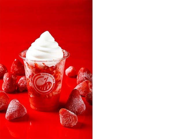 野菜ソムリエがプロデュースする野菜ジュース専門店『リトルジュースバー』からはフローズンいちごと北海道産フレッシュミルクを贅沢に使用した「いちごけずり®」が登場。食後の〆にいちごの甘い香りに包まれ、フワフワ、シャリシャリの食感を楽しみたい。