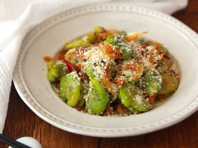■ニンニクと桜海老の香りをまとわせて。白ワインにもぴったりな「そら豆のガーリックチーズソテー」