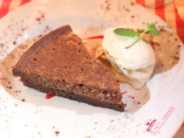 「溶けるヴァローナチョコレートのタルトとバニラアイスクリーム」(写真上)は、同店でも人気のチョコレートデザートをアレンジ。
