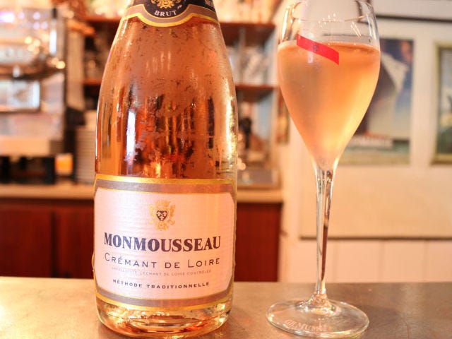 乾杯に供されたのは、ロワール地方のスパークリングワイン「クレマン・ド・ロワール・ロゼ・モンムソー」(写真上)。フローラルな香りがお客の心を和ませて、飲めば汗ばむ身体をすっきりと冷ましてくれる。