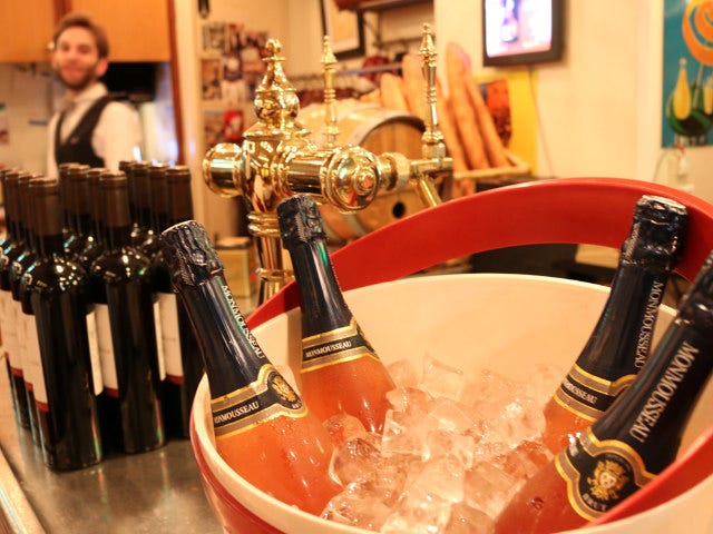 「A votre sante(ア ヴォートル サンテ)!」(フランス語で乾杯)の掛け声とともに、陽気に宴の幕が開く。