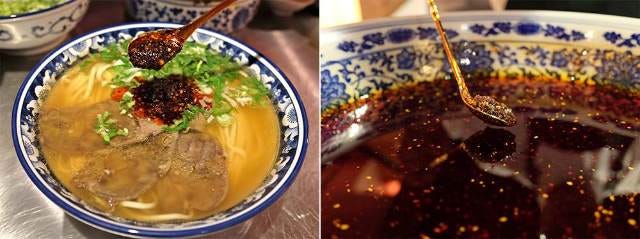 手間ひまかけたスープとラー油、職人芸の麺が一体となった「蘭州拉麺」(写真上)が着丼。