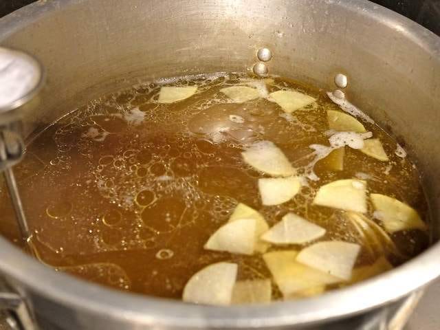 蘭州拉麺の味の構成要素で忘れてはいけないのが、「ラー油」だ。サラダ油に生ショウガ、ダイコン、ネギ、パクチーの根、タマネギの香りを移し、8種ものトウガラシを加える。