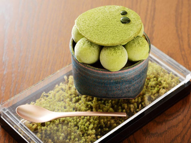 コロンとした円形がかわいい抹茶尽くしのパフェ