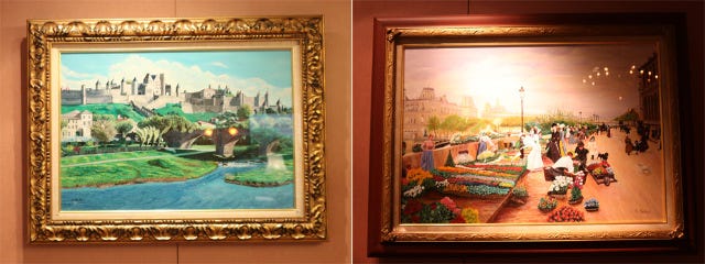 しっとりとシャンデリアが照らすのは、南仏の街並みが描かれた絵画たち。(写真上)。シェフ自ら描いたという数々の名風景が、お客の視界を癒してくれる。