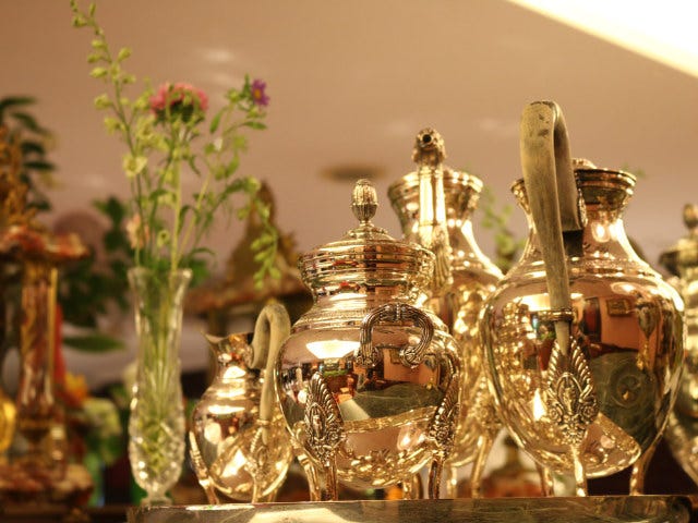 ナチュラルな外装から一転、店内には濃紅色の絨毯が敷き詰められた豪華絢爛な空間が広がる。隅々に飾られたアンティーク家具や貴重な調度品を前に、威儀を正して席に着く。