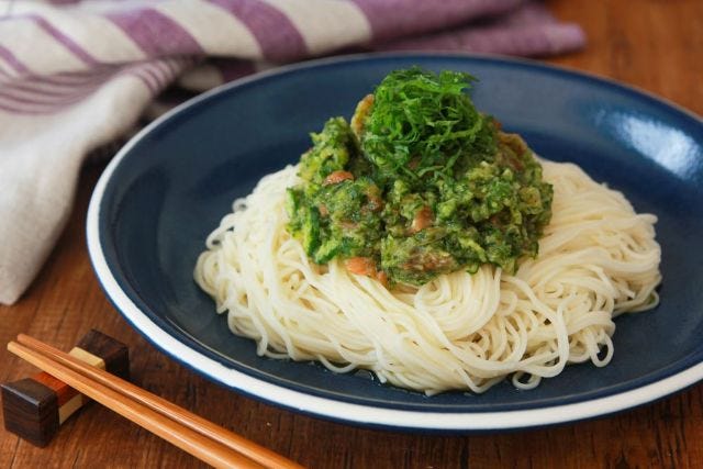 キュウリをすりおろして“たれ”に仕立てた、さっぱりと食べられるそうめんレシピ。