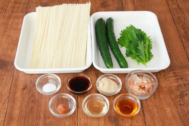 ■おろしキュウリのたれで食べる「薬味たっぷり さっぱりそうめん」