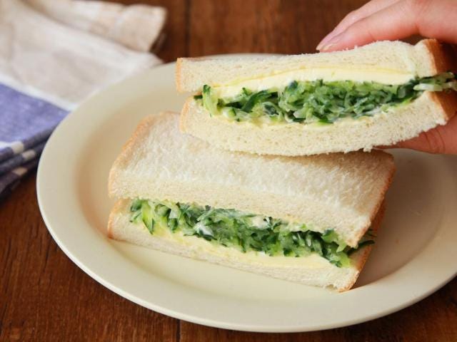 キュウリがメインのサンドイッチと聞くと、なんとなく水っぽくてもの足りなさそうと思う人もいるのでは? しかしこれが、なかなかおいしいのだ。