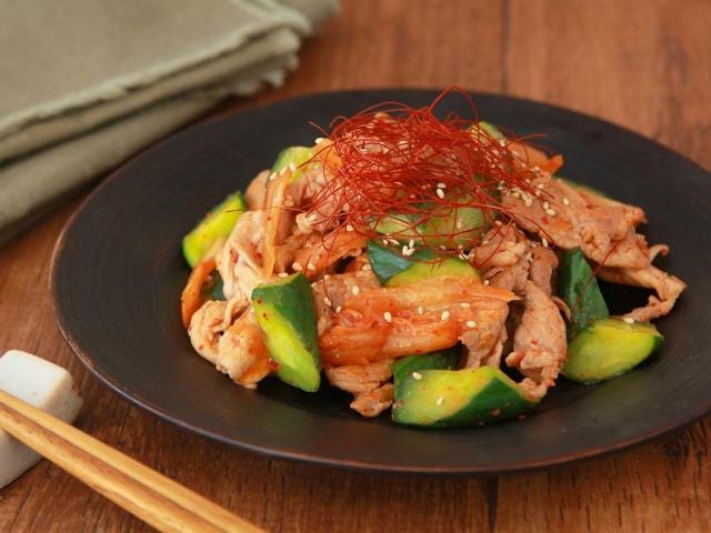 キュウリの生食が苦手な人にぜひ作ってみてほしい1品がこちらの「キュウリと豚のキムチ炒め」。キュウリに豚肉とキムチのうまみが絡んで、おかずにもおつまみにもぴったりな箸のすすむ1品だ。