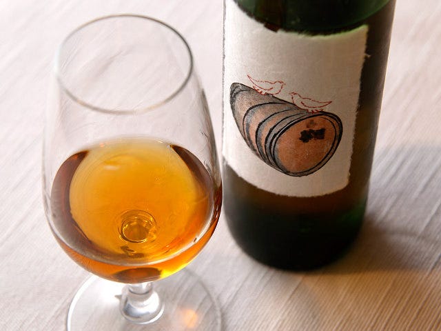 こちらのデザートに合わせたのは広島・呉『榎酒造』の「華鳩 さわやか貴醸酒」。オーク樽貯蔵の熟成古酒です。日本酒度はマイナス77度、酸度は4.1。