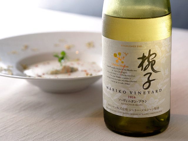 合わせたのは日本ワイン『シャトー・メルシャン』の「椀子 ソーヴィニヨン・ブラン」。レモンやライムなどの柑橘の香りに加えて、かすかに玉ネギの香りもします。この香りを生かすため、新玉ネギとのマリアージュを思いついたそう。