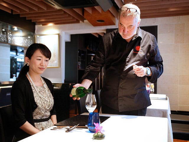 シェフのドミニク・コルビさんは赤坂の『トゥールダルジャン』など、数々の名店で料理長を務められた方で、在日20年以上になります。15年ほど前に、日本酒の会でテイスティングしたのをきっかけに日本酒の魅力に目覚め、多くの蔵を訪れ、今のお店でも日本酒を多く揃えています。