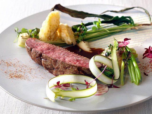 『メゾン・ド・ミナミ』のお料理は、ひと皿ずつの量が多く、前菜からそのボリュームに驚きましたが、素材そのものの味わい、魅力を最大限まで引き出した繊細な味わいで最後までおいしくいただけます。まず美しい盛り付けにうっとり、料理をいただいてうっとり、お酒をいただいてさらにうっとり……。コルビさんの世界を皆さまにも体感いただきたいですね。
