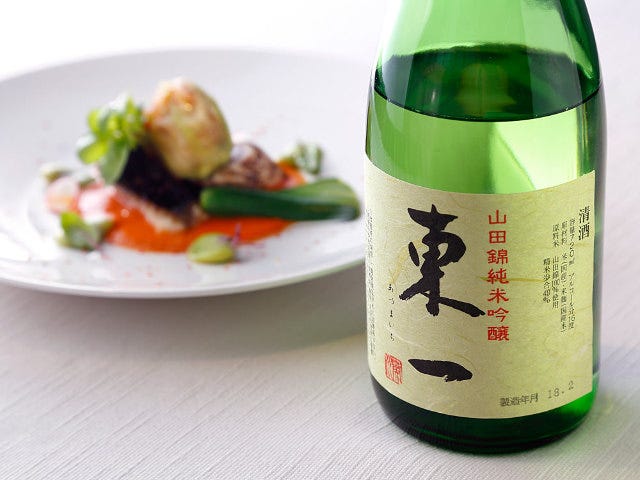 合わせたのは佐賀の「東一(あづまいち) 山田錦純米大吟醸」。鰆の風味や、ラタトゥイユやトマトソースの酸味に、「東一」のきれいなうまみがうまく包み込んで、料理とお酒が握手をするような印象です。いろいろな香りや味わいをもつ食材が、日本酒を合わせることで、一つにまとまるのを実感します。