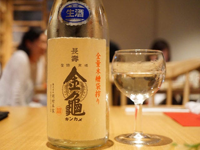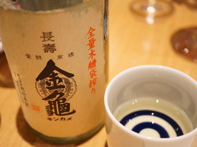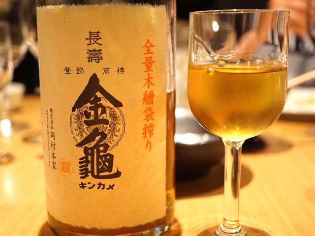 独特な発酵味に合わせて供されるのは「岡村本家 長寿金亀 青90」(写真上)。黒糖さながらの甘みとミネラル香が、酸の刺激をまろやかに化す。