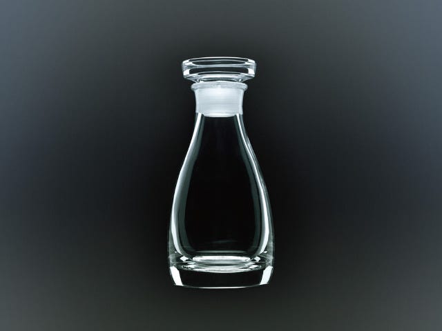 透明度の高いクリスタルガラスで作られた「THE 醤油差し」の注ぎ口には、鋭い切り込みが微かに見える。液だれの原因となっていた“くちばし”を排除し、胴体とフタを分離させることで表面張力がはたらき、注がれた醤油はフタに仕掛けられた線を沿って、胴体へと戻るのだ。
