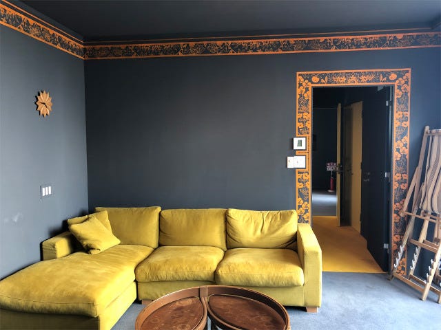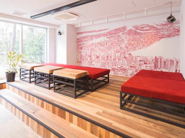 渋谷区神山町と、徳島の景色を合わせた架空の街が緻密に描かれている。家具の材料やインテリアも、多くは徳島由来のものを使用し、文字通り徳島を感じることができる。