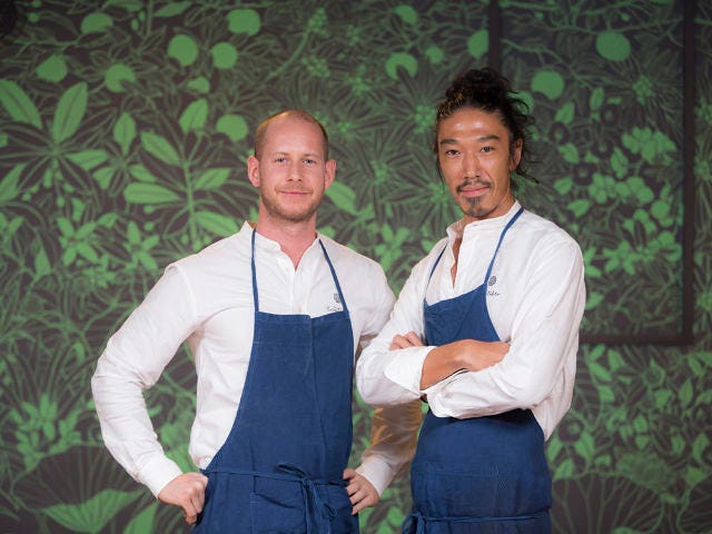 レストランをプロデュースするのは、渋谷神山町のフレンチ『Pignon(ピニョン)』のオーナーシェフ・吉川倫平氏(写真上・右)。ヘッドシェフとして腕を振るうのは、オーストラリア・シドニー出身のジョーダン・マクラウド氏(同・左)。