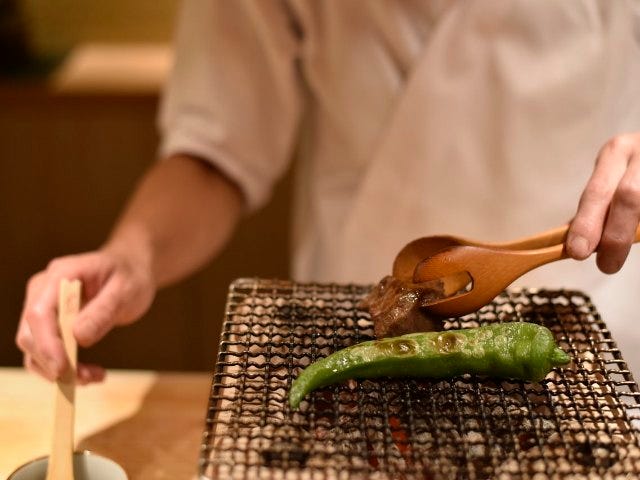目の前で焼かれる圧巻の肉劇場と、巨匠のDNAを受け継いだ日本料理の掛け合い