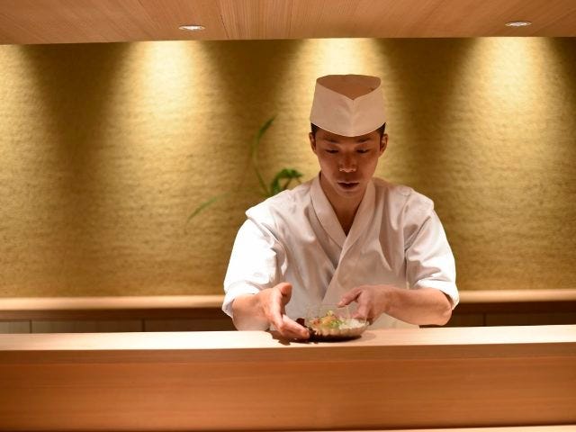 “常(つね)さん”の愛称で親しまれている、店主・常安(つねやす)孝明さんの料理人生は、日本を代表する京料理・懐石料理の老舗料亭『赤坂 菊乃井』からはじまった。器や所作、伝統的な京料理の基礎を身につけて、渡仏。和食ブームの先駆けとなったパリの日本料理店で研鑽を積み、帰国後は、割烹の真髄を学ぶべく元麻布『かんだ』へ。