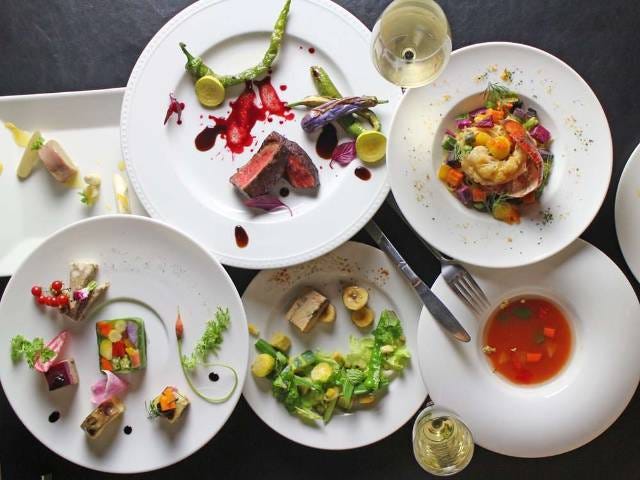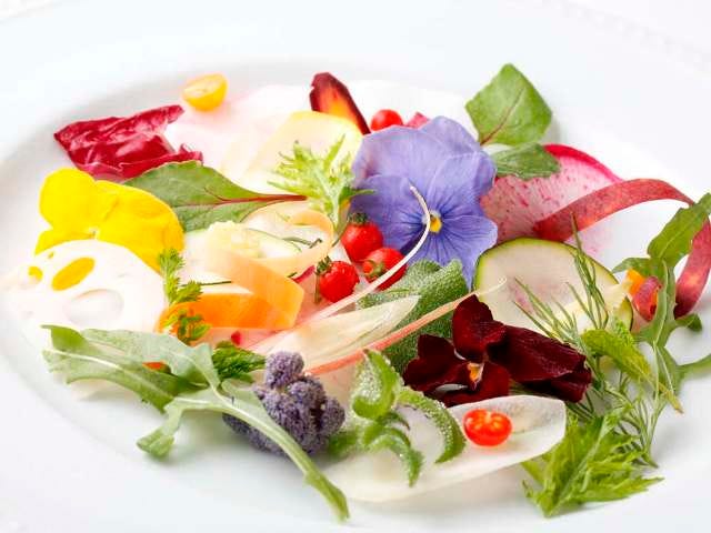 主に白い器を使用し、真っ白のキャンバスに色とりどりの野菜で絵を描く、まるでアートのような料理が楽しめる。