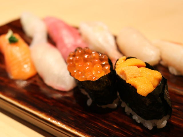 ネタの魚介は主に北海道からの直送だが、日本橋という立地ゆえ築地市場からの仕入れもプラスされる。