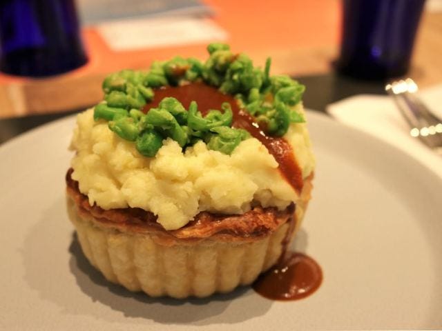 パイにオージービーフをたっぷり詰め、なめらかなマッシュポテト、グレイビーソースをかけた「オージービーフパイ」(写真上)は、ご覧の通りかなりボリューミー。オーストラリア産のワインとともに、ぜひ味わいたい。