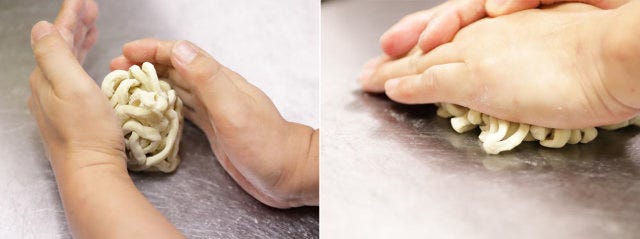 茹でる前に手もみをすることで、スープの絡みをよくし、フワフワモチモチッとした食感に。このフワッモチッを存分に楽しめる超極太麺の、ほかにはない食感を求めてやってくるリピーターが、早くも続出しているとか。