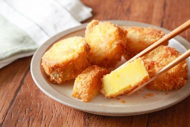 ふかし芋のしっとりとした特徴を生かして、つぶさずにそのまま切って揚げる「ふかし芋のそのままコロッケ」のレシピ。