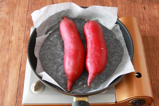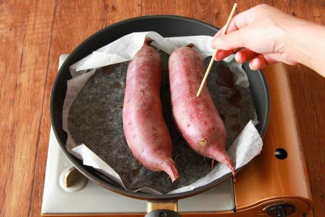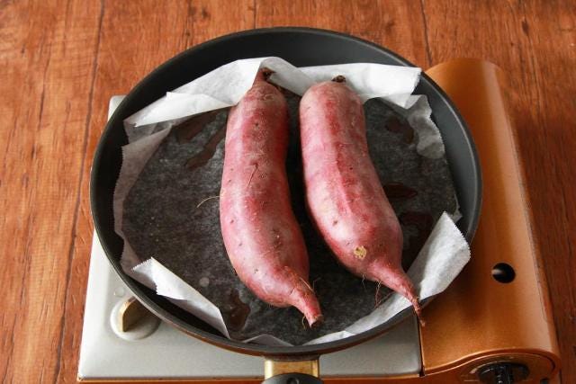 ふかし芋を作るには蒸し器が必要と思うかもしれないが、フライパンさえあれば、ご家庭で手軽においしく作ることができる。