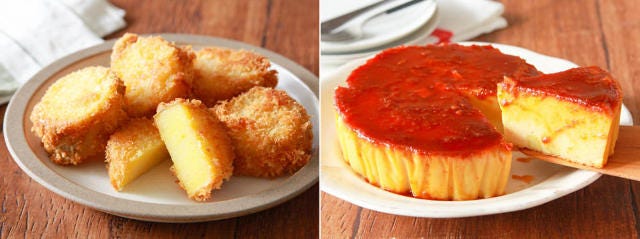 今回はフライパンで手軽にできる基本のふかし芋の作り方、その特徴を生かしてアレンジするおかず「そのままコロッケ」とダイス状にカットしたふかし芋入りのスイーツ「サツマイモプリンケーキ」レシピをご紹介しよう。