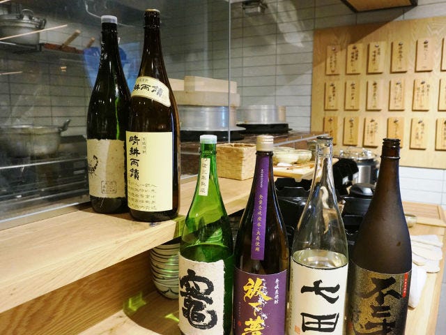 お酒は、全国各地から集めた日本酒やワイン、ウィスキーなど30種類ほどが揃う
