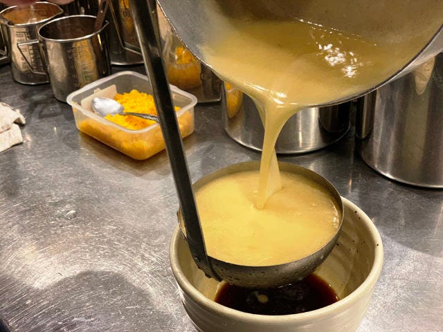 これだけ手をかけ体力を使っても、たった数人分しかとれない。しかしこれでこそ、別次元な濃厚さを持っていながら、洗練された味わいの鶏白湯が生まれるのである。