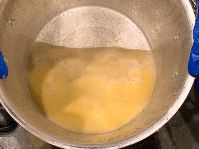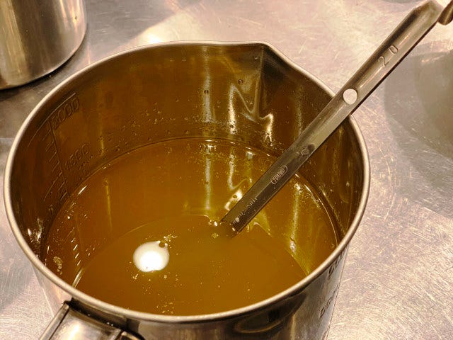スープを煮だしている時に浮かんでくる脂をすくい取ったものだが、そのすくうタイミングが何より重要。早すぎるとコクも香りも薄いものになり、遅すぎるとくどくなってしまう。