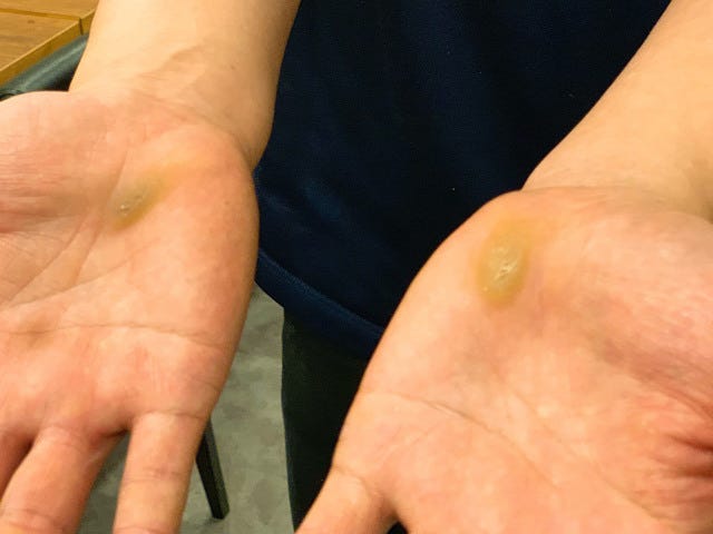 取材中、ふと椎名さんの手のひらを見て、手首近くに大きなタコがあることに気づいた。聞けば、鶏白湯をこす作業でできるタコだという。
