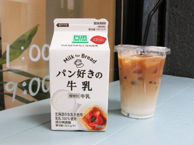 アイスカフェラテに使用している牛乳は、『カネカ食品』の「パン好きの牛乳」(写真上)。コクや甘みがありつつも後味はスッキリしているのが特徴で、バインミーをよりおいしく食べられるという。