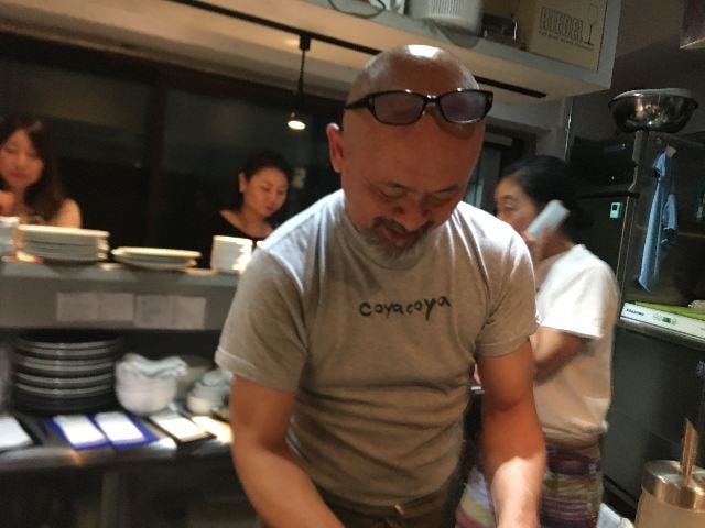 「とにかく料理を作るのが好き、ああでもないこうでもないと、いつも試行錯誤を繰り返してる。だから、いつまでたっても到達点なんかないんです。でもね、だからこそ面白いし、やめられない」、50歳を境に正業の車屋を辞め、大好きな料理の世界へ。最初は二足のわらじを履いていたが、瞬く間に店が忙しくなり料理が本業になってしまった。