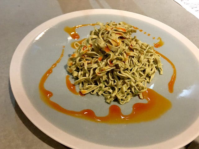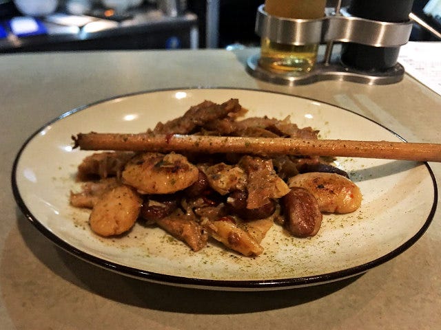 棒状のレモングラスや各種の豆、種を出してスピリタスに漬け込んだカルダモンと煮込まれた「トリッパと豆とカルダモン」は目を見張るおいしさ。カルダモンの柑橘っぽい香りがハチノスに新しい官能を与える。