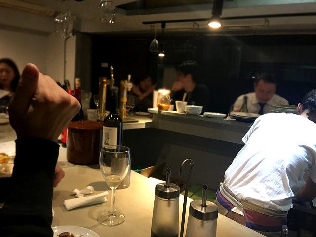 それでも人を惹き付けるのは、凝った味の組立と小さめのポーションのメニューや、赤星から自然派のワインまで揃う酒のラインナップなど、酒飲みのツボを心得た店主のこだわりだ。