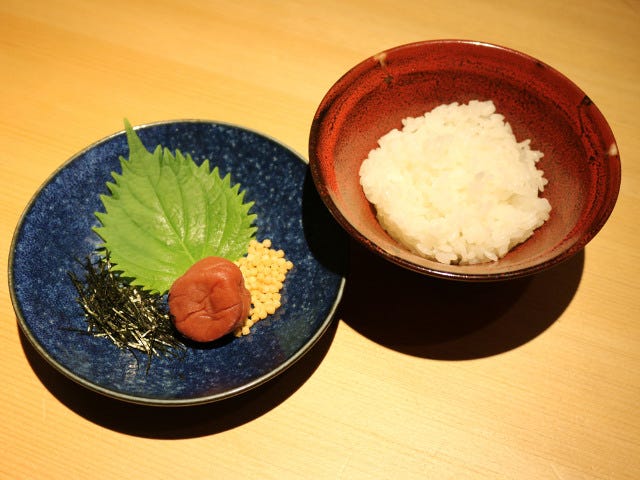 梅干しの酸味、シソの風味、ぶぶあられの食感のバランスの妙で、サッパリした味わいに。ラーメンで満腹でもスイスイと平らげてしまえる。ご飯にスープを吸わせながら、「二度目のおいしい」をゆっくりと楽しもう。